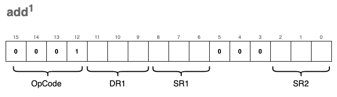 0x1220 // 0001 0010 0010 0000 ADD R1, R0, x0 ; copy R0 to R1 (R1 = R0 + 0)