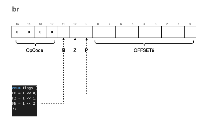 Instructions are encoded into a uint16_t using the following format: