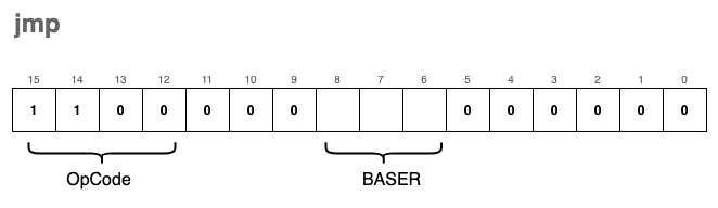 jmp | 0xC | 0b1100 | jmp | Jump / Return from subroutine |