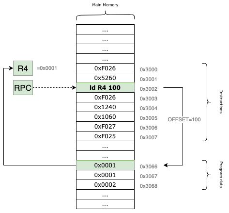 ld | 0x2 | 0b0010 | ld | Load (RPC + offset) |