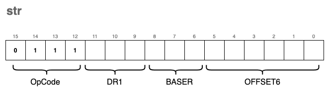 str | 0x7 | 0b0111 | str | Store (Base + offset) |