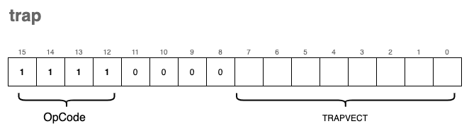For example, let’s analyze 0xF026. Its binary representation is 1111 0000 0010 0110. It is easy to spot 1111 as the OpCode for trap, and the TRAPVECT of 0x26 correctly corresponds to our tinu16 function.