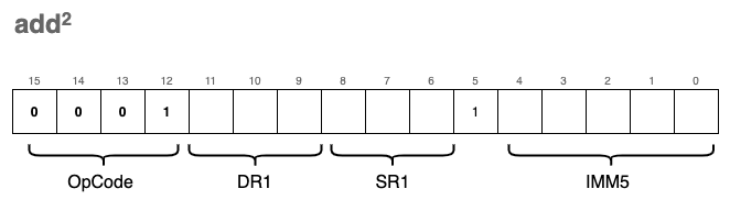 Instructions are encoded into a uint16_t using the following format: