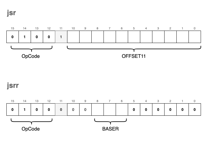 jsr | 0x4 | 0b0100 | jsr | Jump to subroutine |