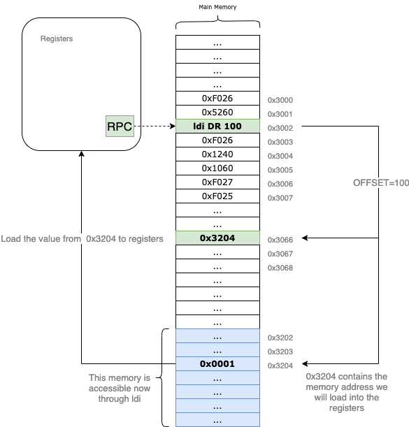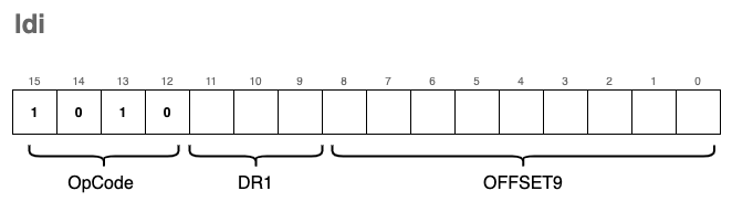 ldi | 0xA | 0b1010 | ldi | Load indirect |