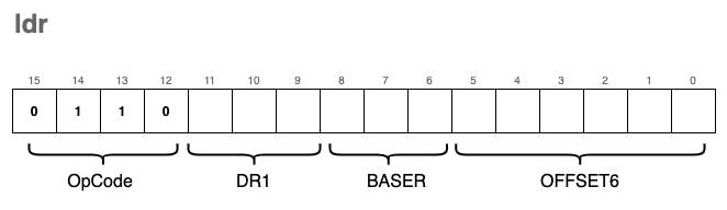 ldr | 0x6 | 0b0110 | ldr | Load (Base + offset) |