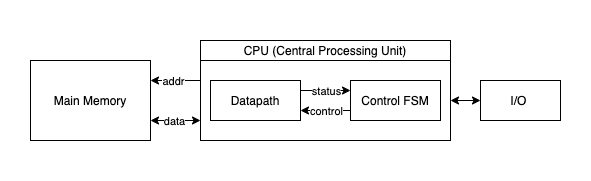 Our LC-3 inspired VM, like most general-purpose computers today, is based on the von Neumann computer model. It will have three main components: the CPU, the Main Memory, and the Input/Output devices.