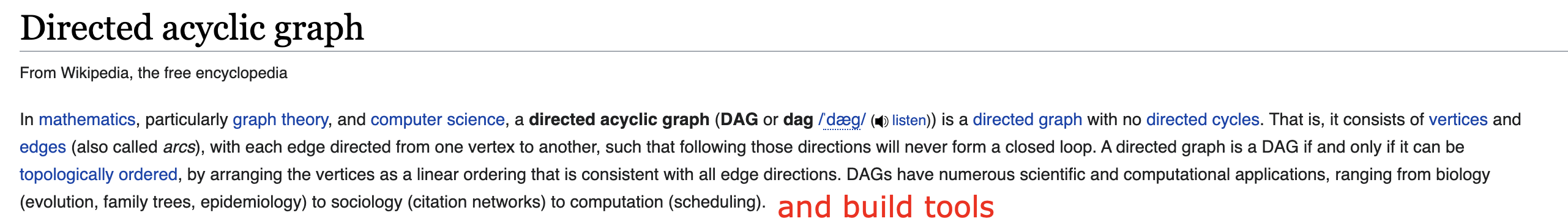 Quickly, without opening your CS reference book, tell me what a Directed Acyclic Graph is. It’s ok; you don’t have to open your CS reference book because the authors of the documentation were kind enough to link a Wikipedia article: