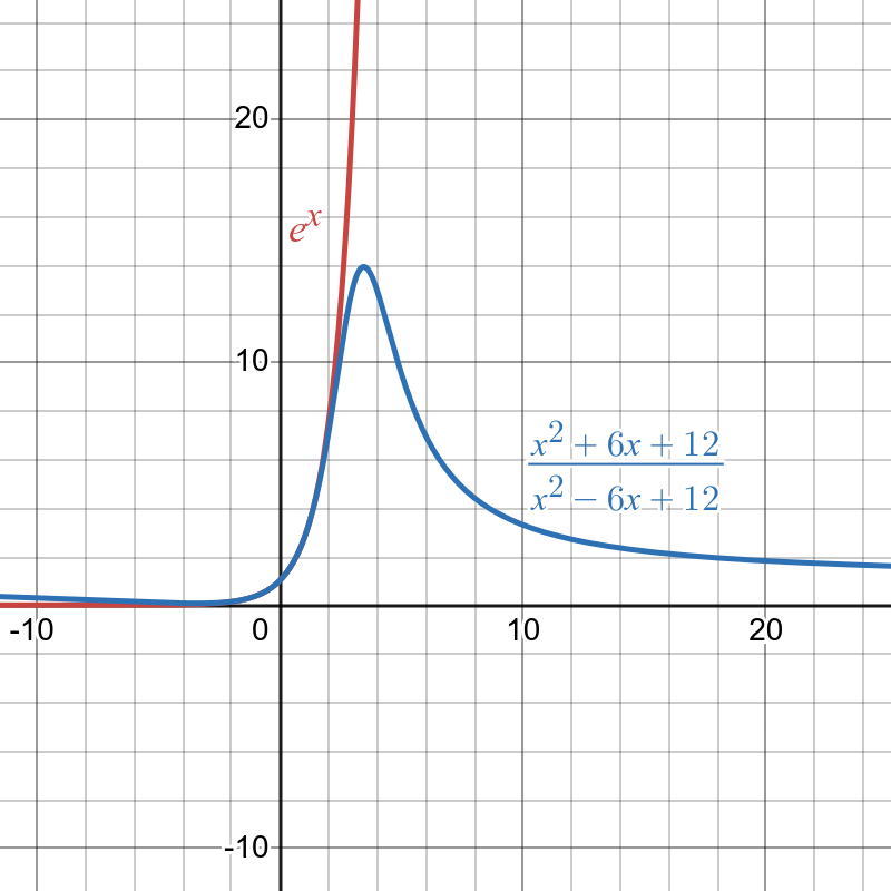 So, in a way, $e^x \approx \frac{x^2+6x+12}{x^2-6x+12}$ is true for small numbers, just like $\sin(x) \approx x$ is true for small angles.